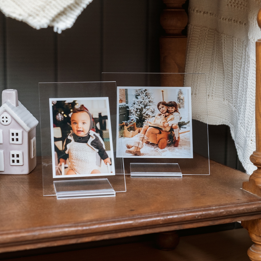 With a photograph encased in a transparent acrylic frame that adds an elegant touch, and a lightweight acrylic stand, the Christmas Design Clear brings all the magic, innocence, and charm of Christmas to make this season even more special!