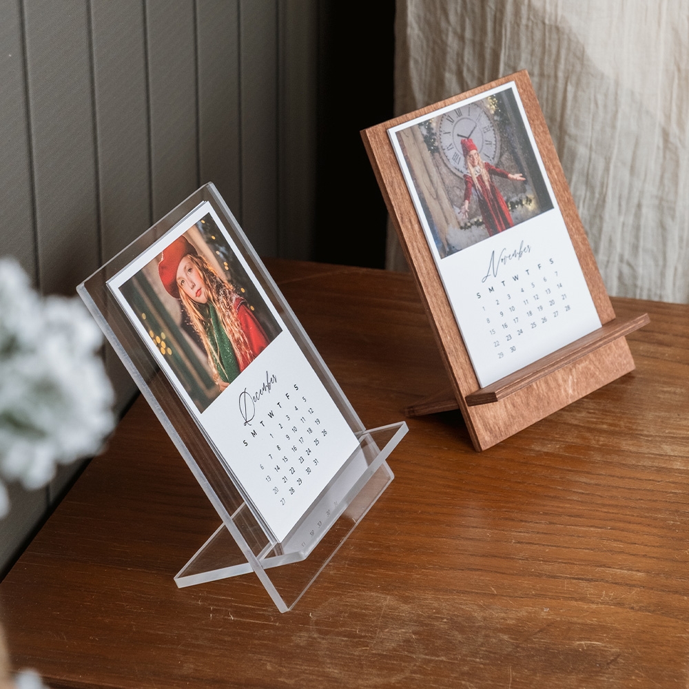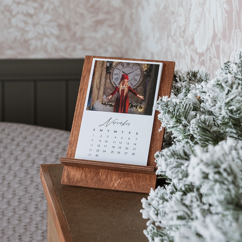 The Christmas Calendar Holder is the perfect option for your clients to decorate their desks and enjoy happy memories each new month. Featuring a birch wood stand and 6 double-sided, customisable prints, this product stands out as both a beautiful and practical accessory.
