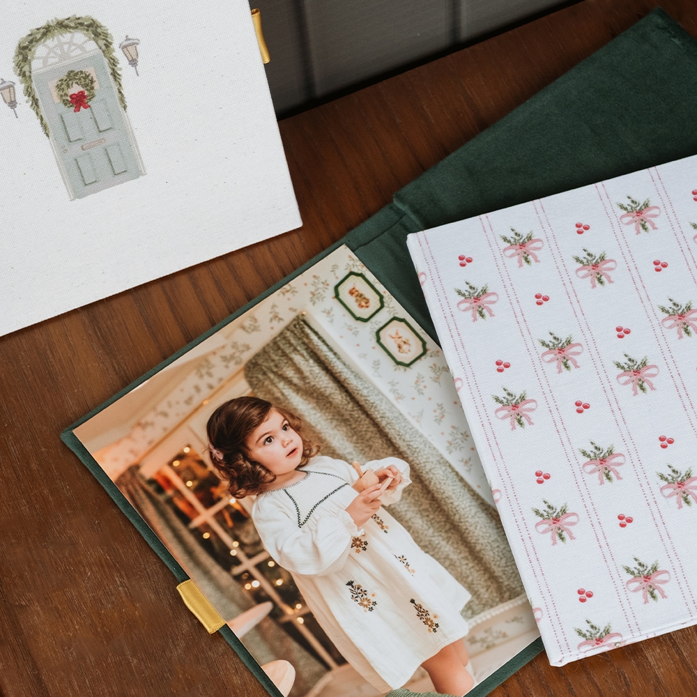 Christmas Folios remain a favourite choice during this magical season. Simple, elegant, and perfect for gifting with love. Both digital and analogue versions are available to suit your style. Customise your folio with classic Buckram tones such as Red, Green, Navy, or Natural Pure, bringing a traditional and sophisticated touch to your gift. Premium Velvet is another option for covering the product, available in Cream, Moss Green, Terracotta, Tundra, and Clay. The Christmas Patterns offer a fun way to personalise this product (available in the digital version only).