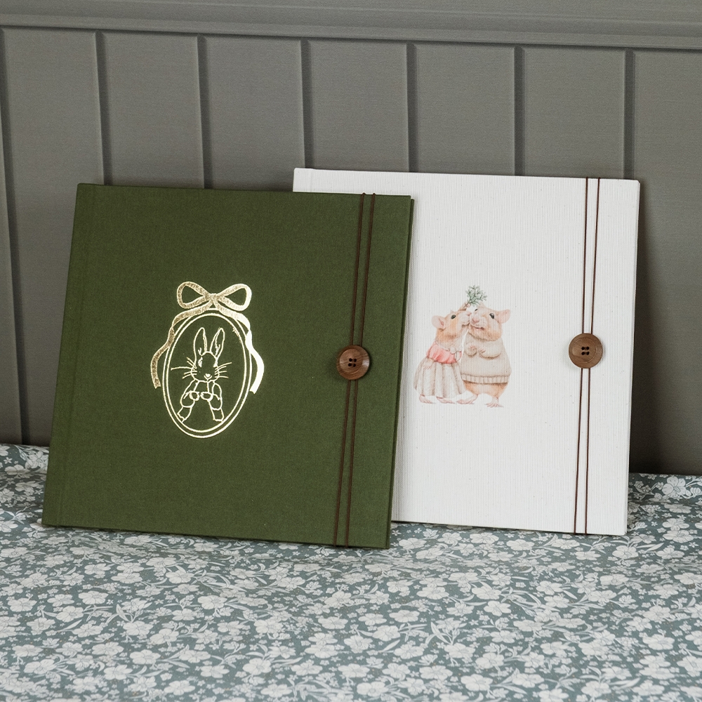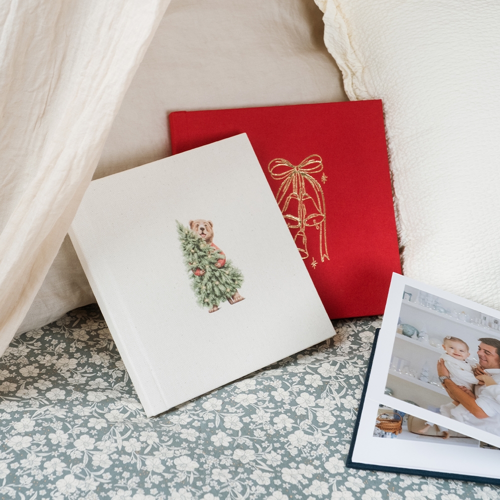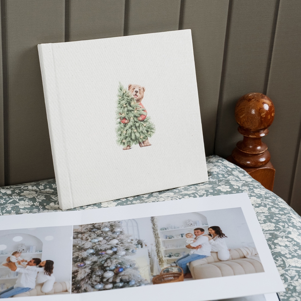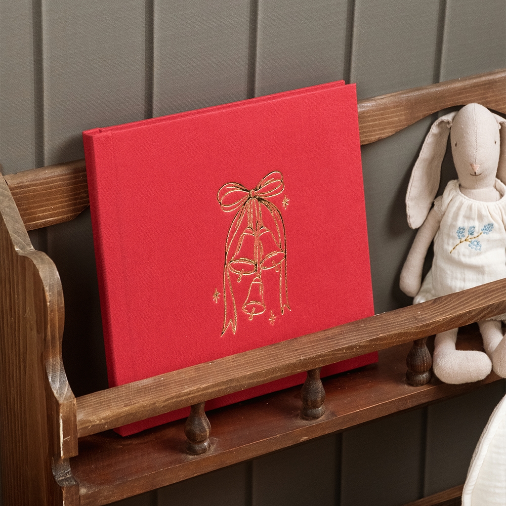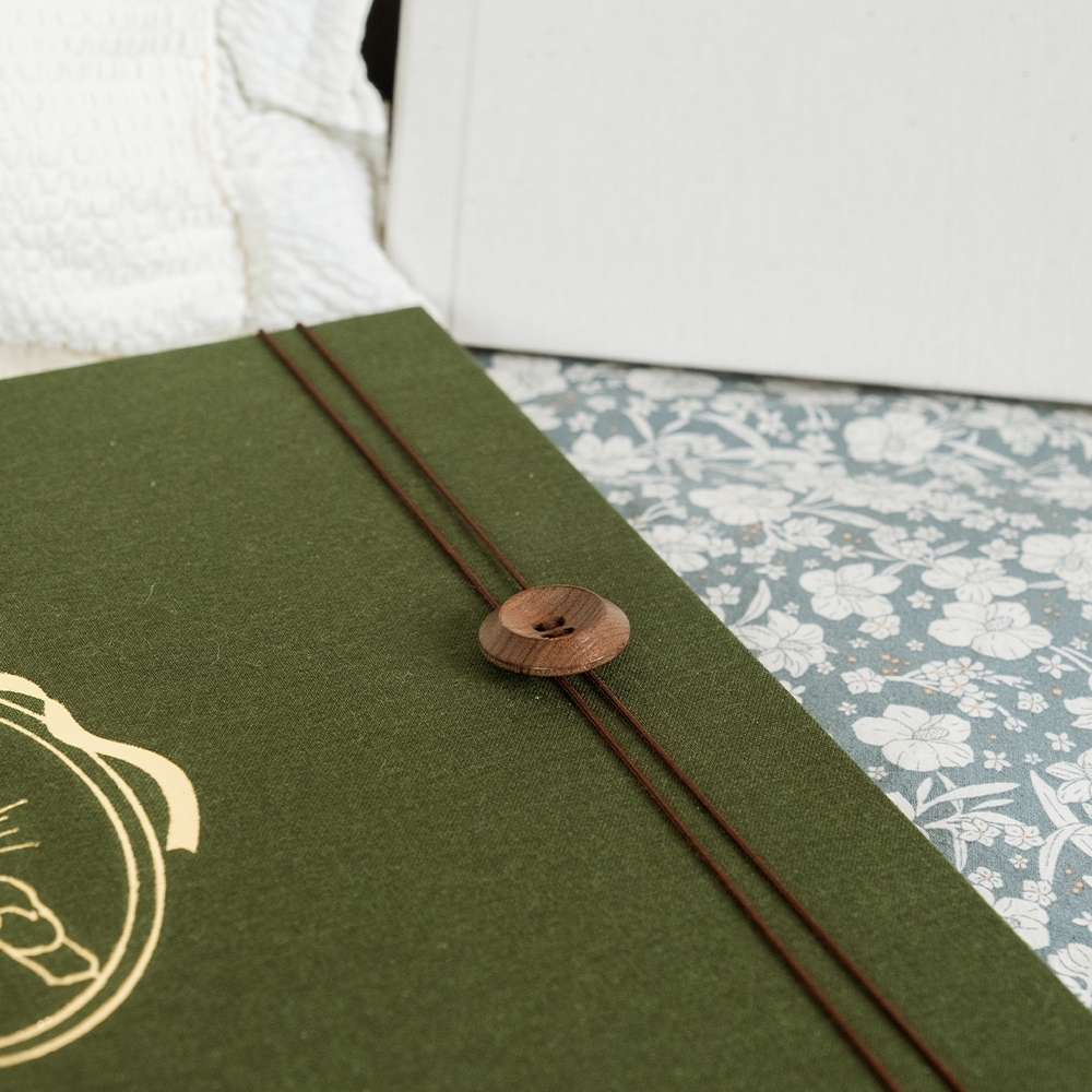 With a cozy and charming design, the Christmas Book stands out for its custom button and brown elastic band that wrap around the buckram cover, available in festive shades like Green, Red, Navy, or Natural Pure. The button is an optional extra you can add for an even more special touch. If you prefer something simpler, you can also choose a version without the button and elastic, for a cleaner and more contemporary look.