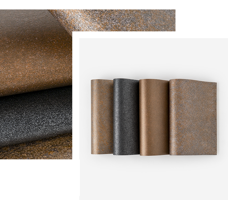A polyvinyl coating that offers high durability and unique textures. Inspired by snake skin and with a relief touch, its colours have a soft and metallic tone. It stands for a bold and elegant coating, with the purpose of making the difference.