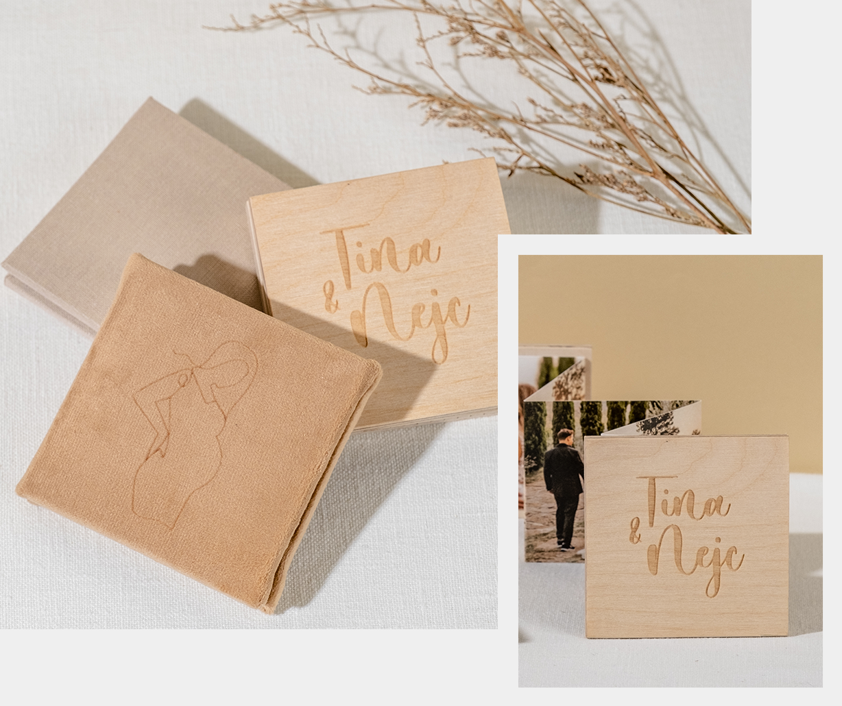 The Little Folios bring more charm to your clients' memories. These small frames can be covered in Buckram, Velvet or with the option of natural wood, resulting in a totally diverse solution and with a style adapted to your client.