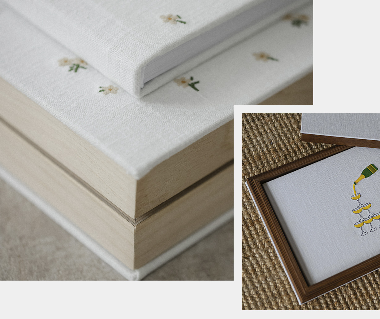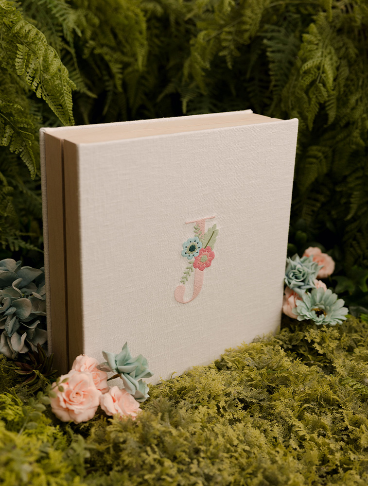 This box is ideal for those looking for an elegant and timeless way to preserve their album. Using personalised embroidery, the collection pays tribute to the traditional techniques and handwork characteristic of Portugal. The precision of the details is astonishing, providing a notable contrast with the lining and resulting in a product that lasts over time.
